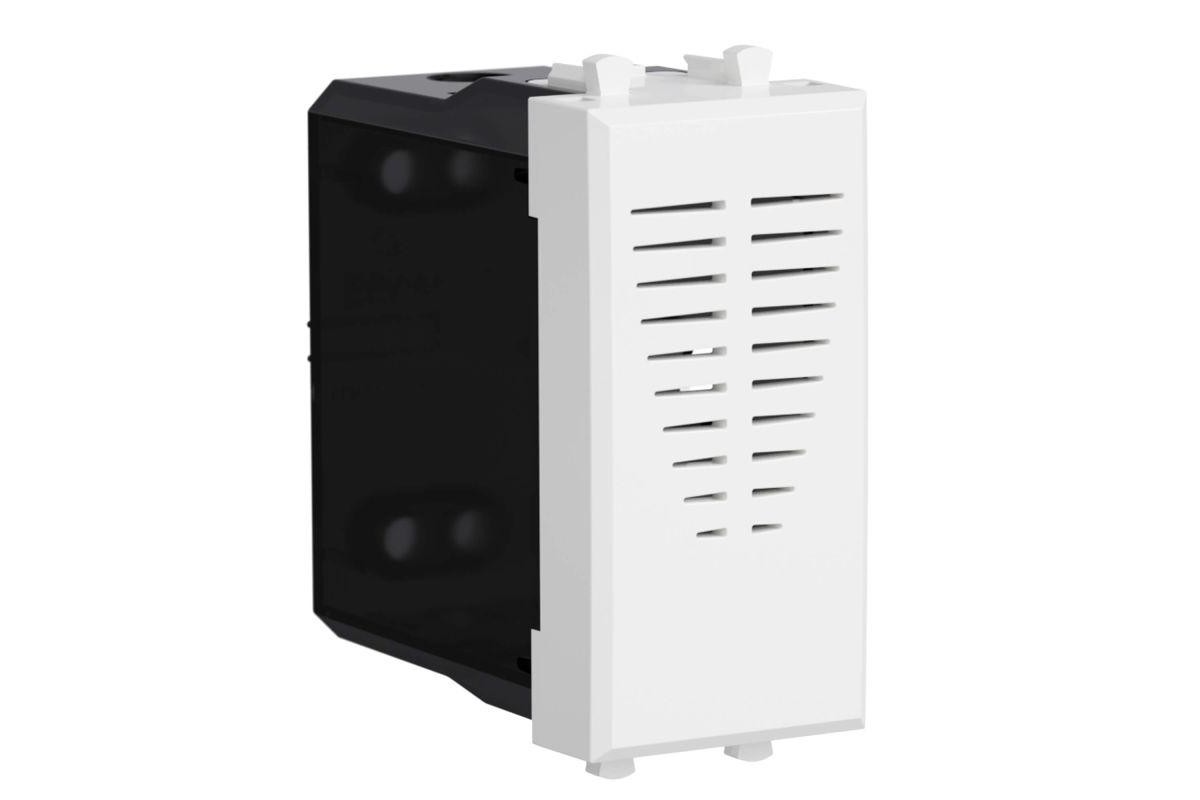 Модульный звонок от ДКС (1 модуль) – прибор, издающий звуковой сигнал. Проводной звонок – элемент модульных ЭУИ, питается от электросети. Номинальное напряжение – 230 В. Материал – пластик. Монтаж производится в кабель-каналы систем "In-liner Front" и "In-liner Aero". Цвет звонка – "Белое облако". Это сложный оттенок белого, идеально сочетающийся с любой цветовой гаммой.